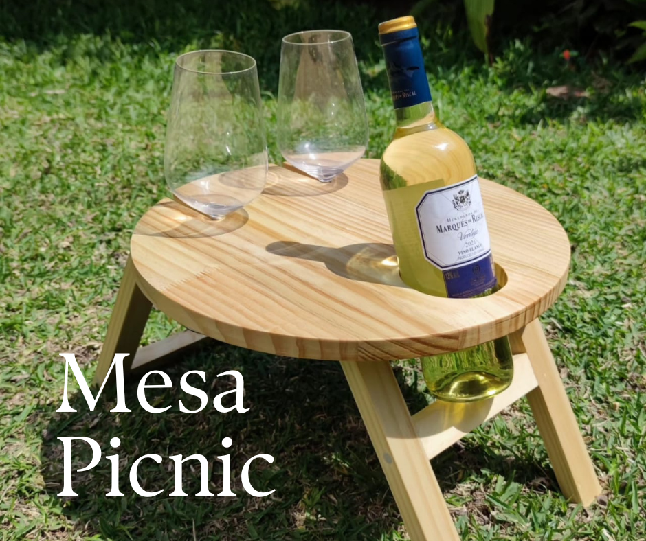 Construyes desde cero tu mesa picnic, pensada para dos copas y una botella de vino.